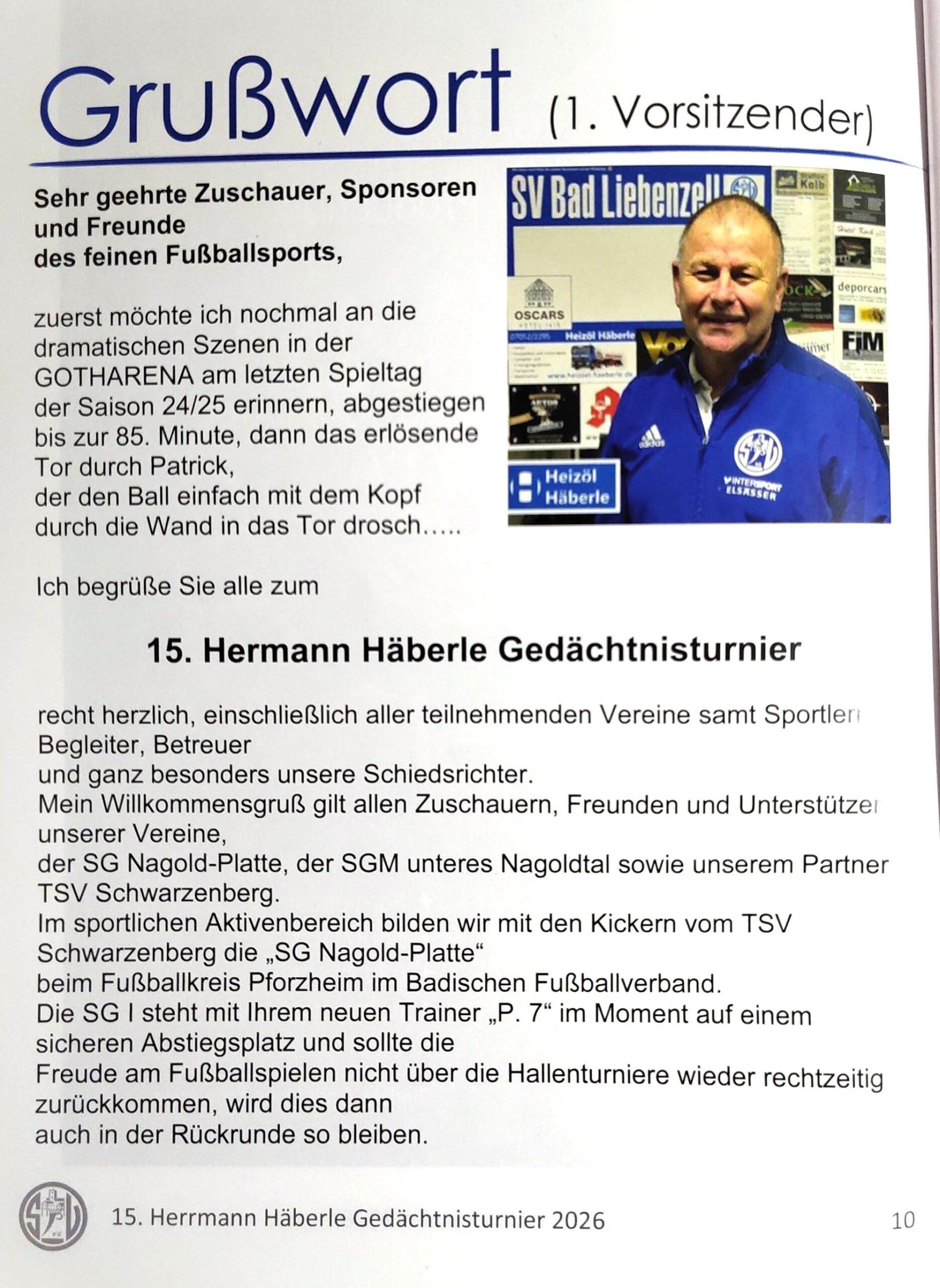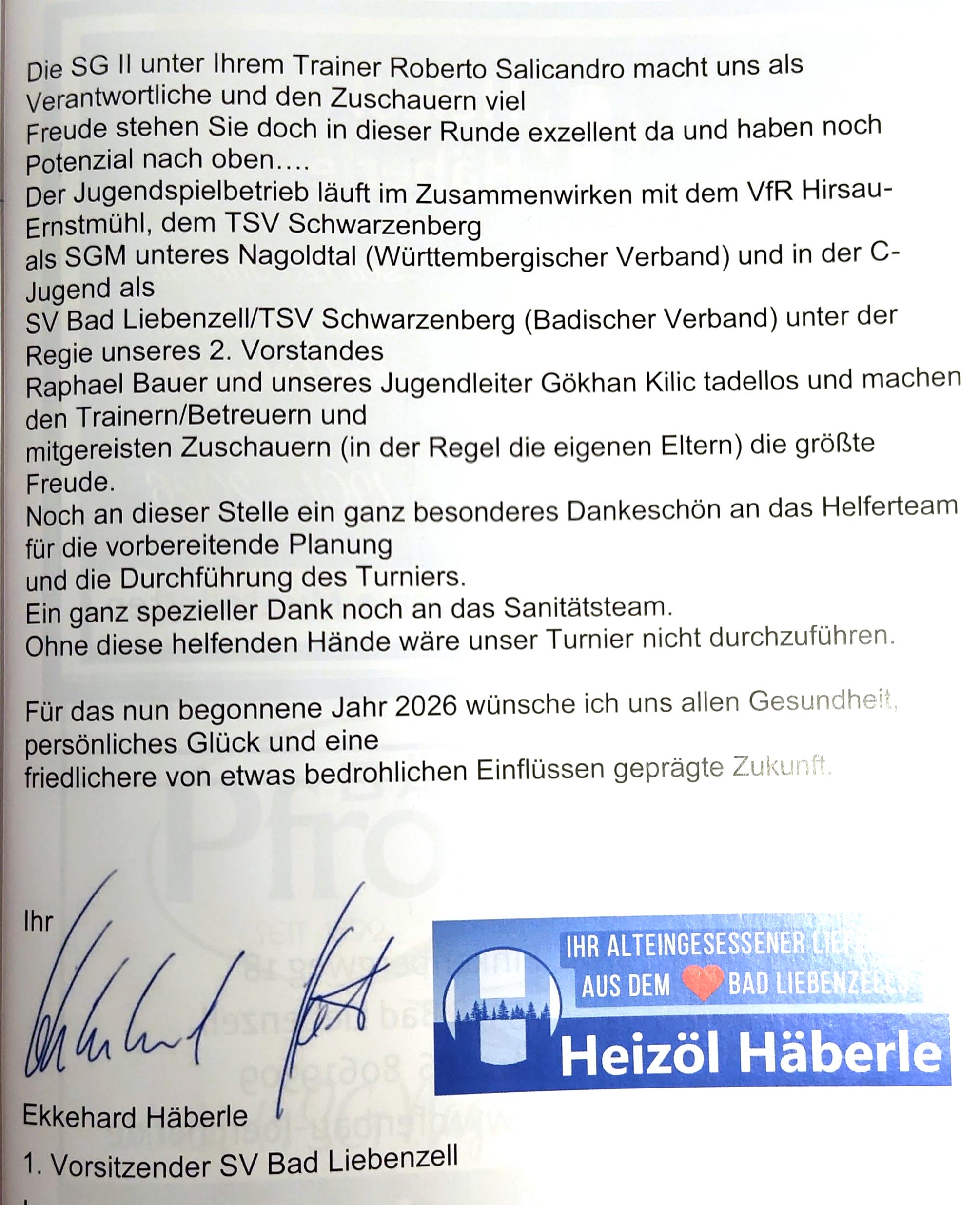 Kleiner Jahresausklangsgruß …VEREIN | Mo., 22. Dezember 2025 … von Vorstand Achim Renner aus der letzten Ausgabe des kleinen TSV Schwarzenberger Stadionheftleins: