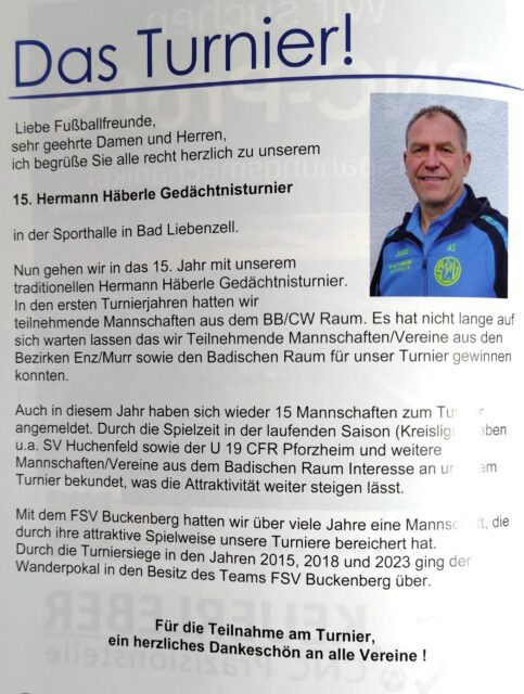 15. Hermann-Häberle-Gedächtnisturnier 2025AKTIVE | Mi., 21. Januar 2026 Beim 15. Hermann-Häberle-Gedächtnisturnier ging die SG Nagold-Platte mit gleich zwei Mannschaften an den Start – und sollte am Ende allen Grund zur Freude haben. Hallenturnier des SVL – heute & morgen!AKTIVE | Fr., 16. Januar 2026 Das wichtigste: Finale am morgigen Samstag ab 17.55 Uhr!