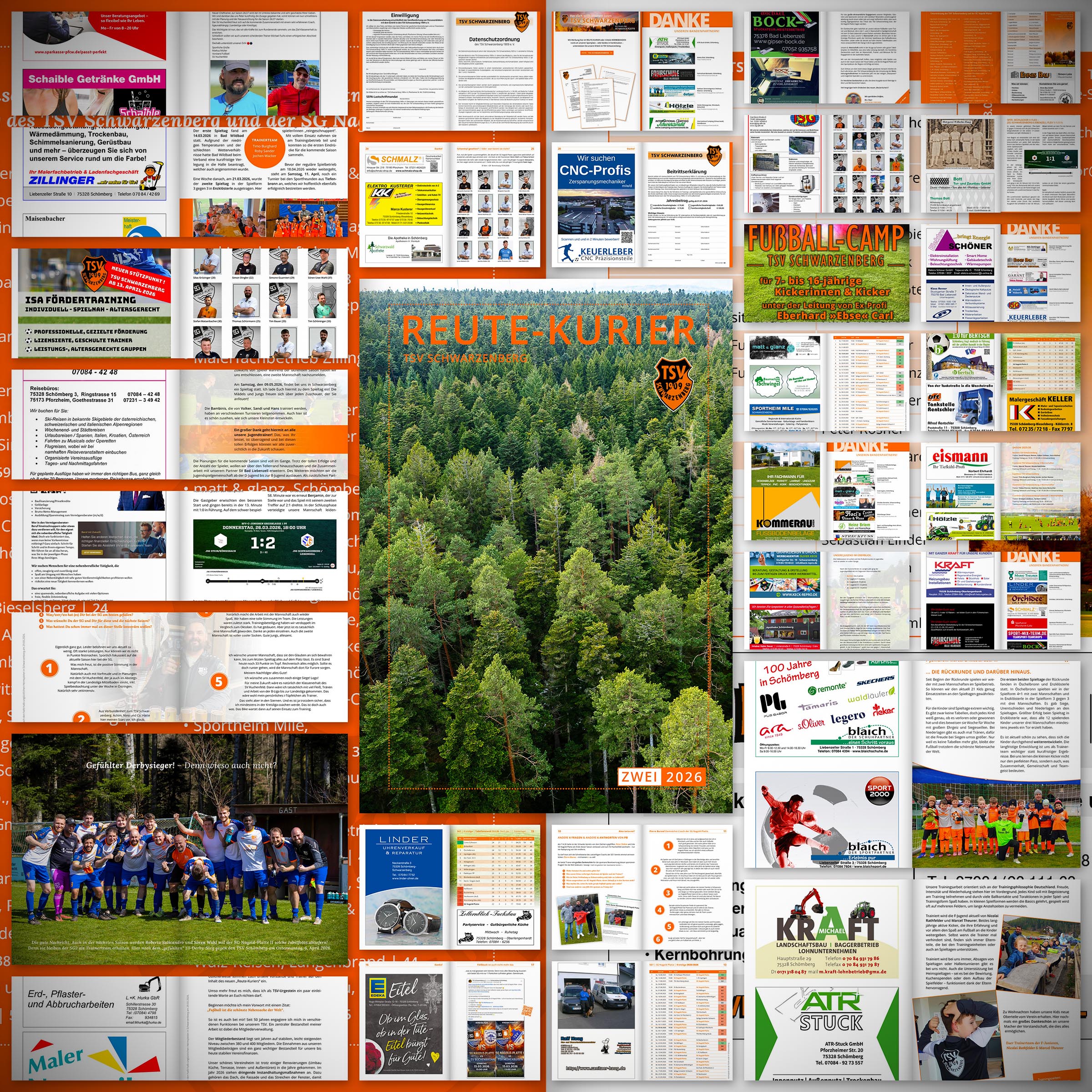 Reute-Kurier »Zwei 2026«REUTE-KURIER | Do., 9. April 2026 Joachim Theurer (Kassier), Andreas Rochholz (Jugendleiter), Achim Renner (Chef), Peter Sieben (aktueller Cheftrainer), Pierre Burow (nächster Cheftrainer), Sören Wahl (SG2), Marcel Theurer (F-Junioren), Timo Burghard (E-Junioren), Norbert Callies (C-Junioren) … … ungefähr in dieser seitlichen Reihenfolge sei gedankt für die Beiträge, die ich speziell für die aktuelle Ausgabe des »Reute-Kurier«s erhalten habe. Eine geballte Ladung Wort- & Bildgut unter dem schlichten Titel »Zwei 2026«. Hätte zum heutigen Nachholheimspiel in Schwarzenberg erscheinen sollen. Doch „logistische“ Gründe verzögern die Verteilung des Hefts – heute Vormittag brandfrisch in voller Farbe bedruckte 60-Seiten. Mit Dank an Axel Schwemmle und seiner Druckerei druckpartner.com in Birkenfeld! Das Heftlein wird ab morgen – Freitag, 10. April – hier ausliegen, bei einer klein-feinen Anzahl unserer Anzeigenkunden bzw. Bandenpartnern: